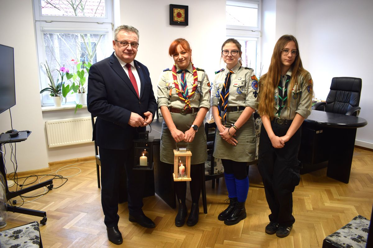 „Pielęgnuj dobro w sobie” to hasło Betlejemskiego Światła Pokoju 2025, które dotarło (16.12) do Urzędu Gminy Kłodzko. Na ręce wójta Zbigniewa Tura przekazały je harcerki z Hufca ZHP Ziemi Kłodzkiej im. Marianny Orańskiej.