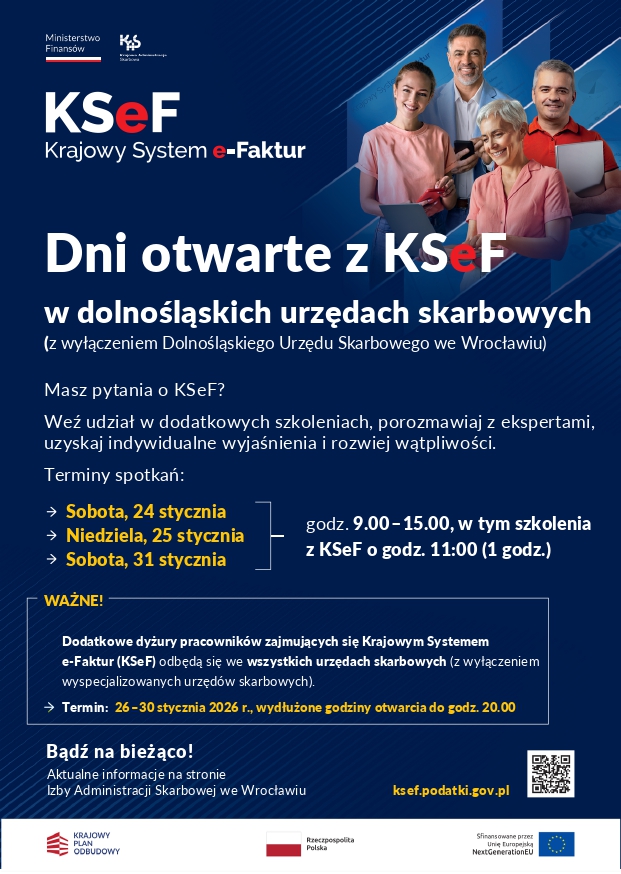 W związku z wprowadzeniem KSeF, we wszystkich dolnośląskich urzędach skarbowych (z wyjątkiem wyspecjalizowanych) - w tym w Kłodzku - odbędą się dni otwarte, podczas których mikro, makro i średni przedsiębiorcy będą mieli możliwość lepiej poznać ten system.